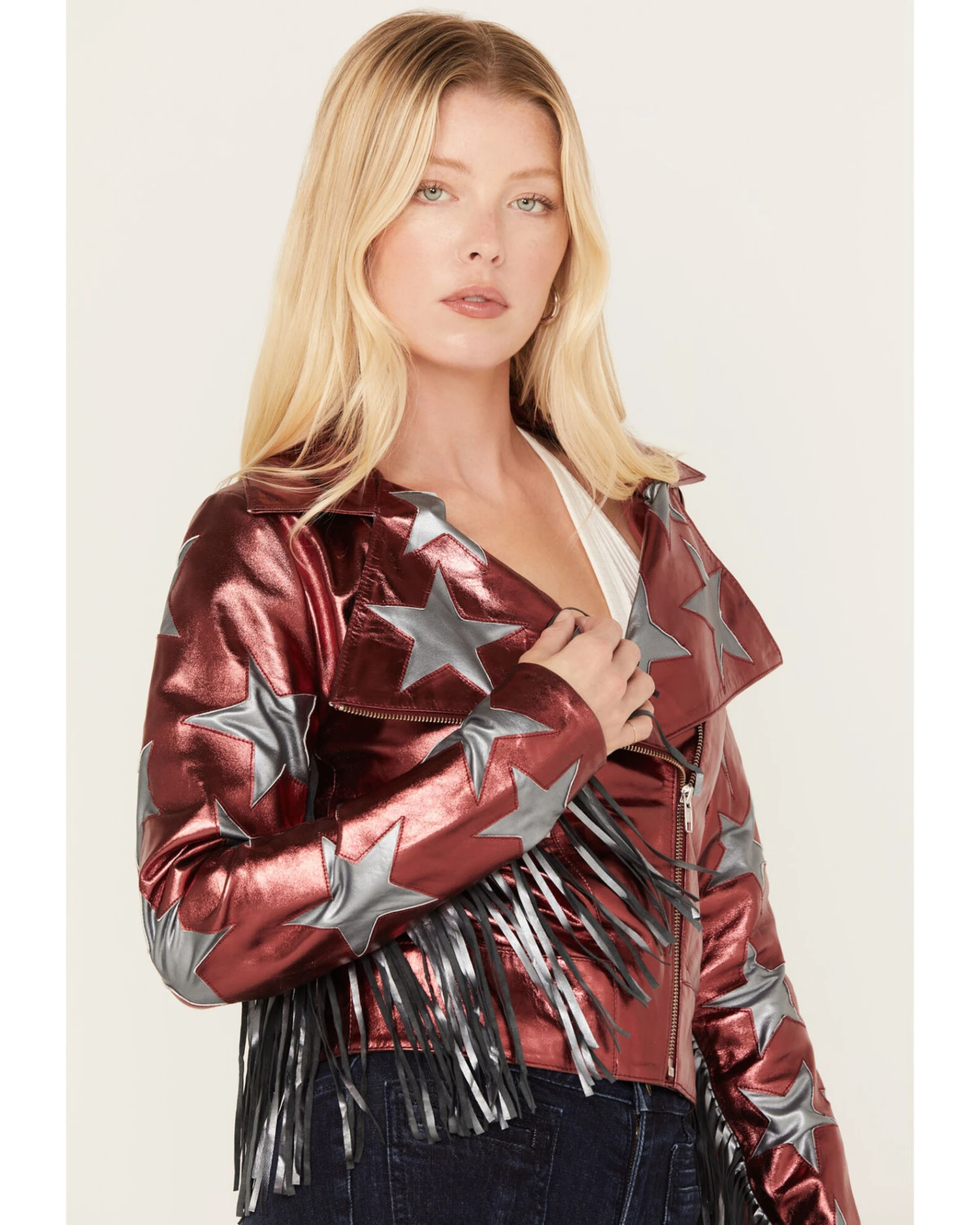 Understated Leather Women’s Howdy Fringe Studded Moto Jacket