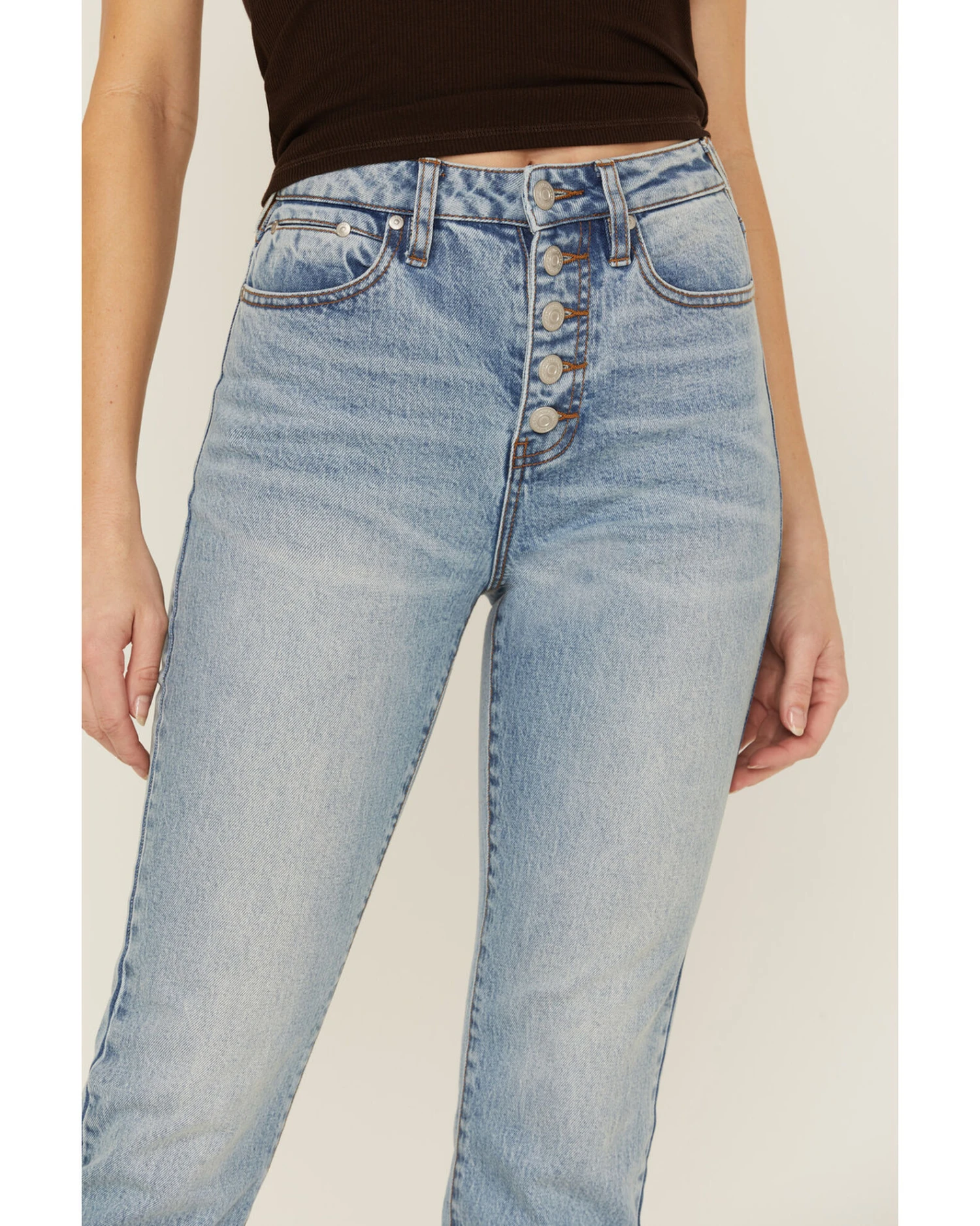 Cleo + Wolf Women’s Exposed Button Fly Slim Straight Denim Jeans