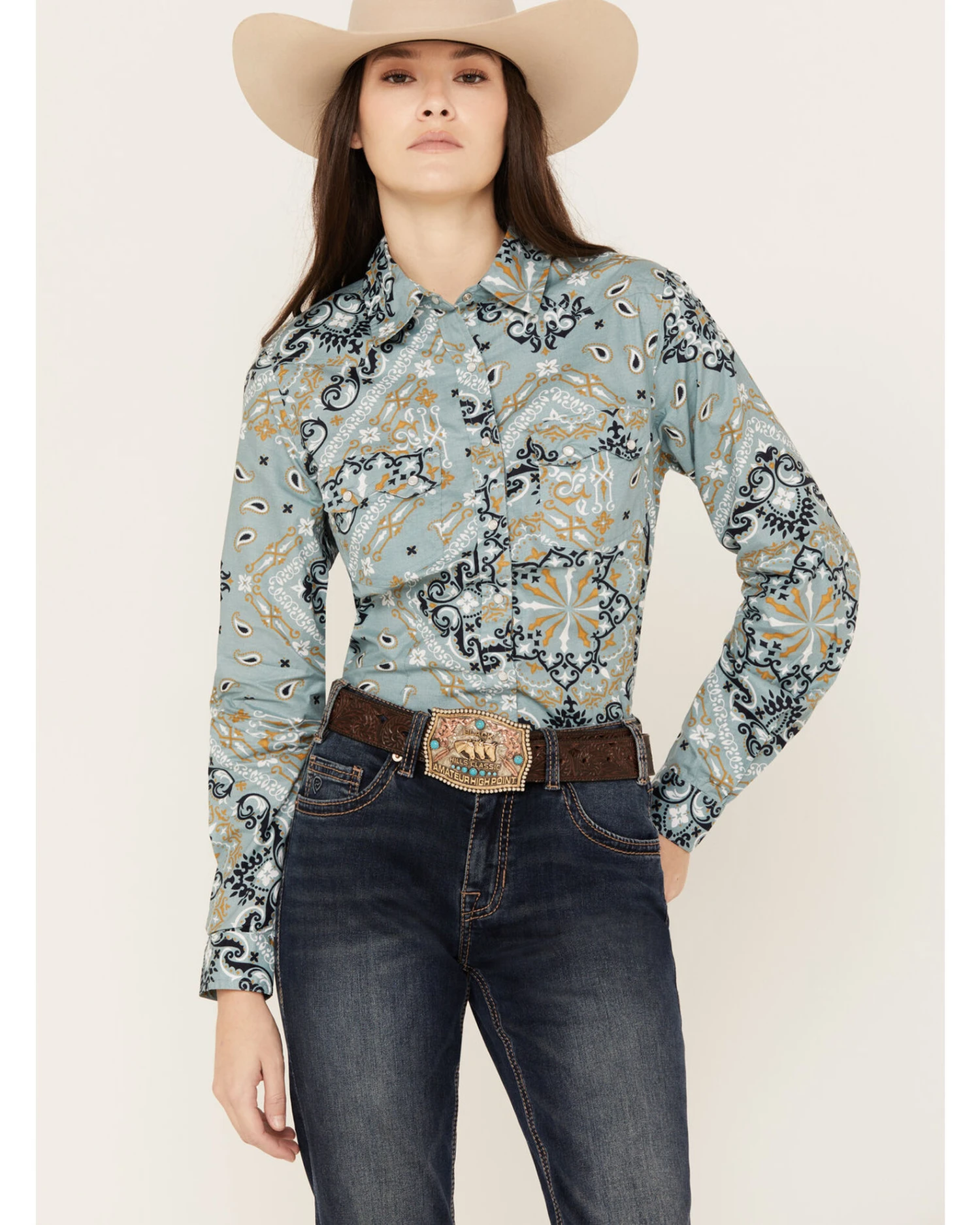 Cotton & Rye Women’s Bandana Print Long Sleeve Snap Western Shirt