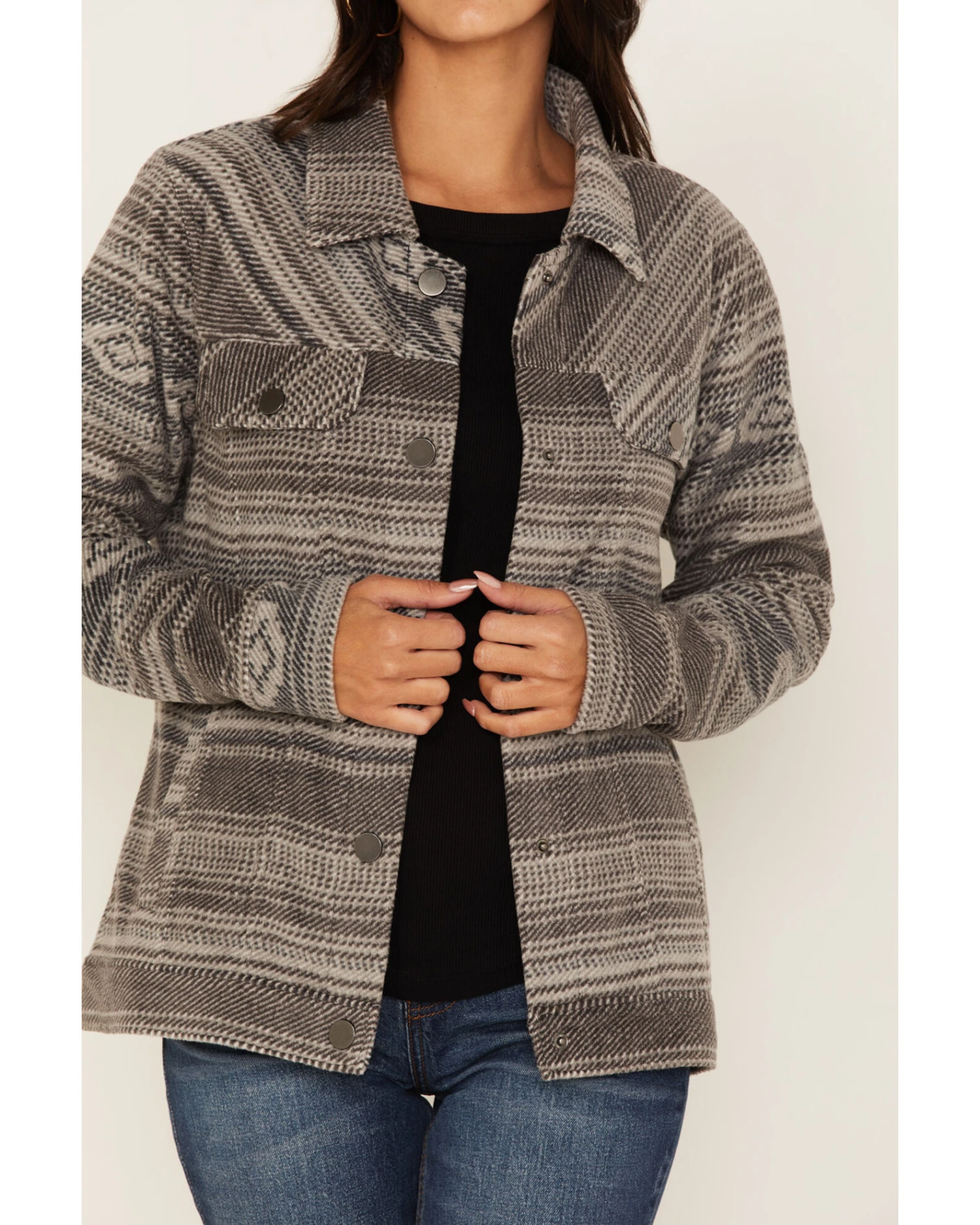 Cruel Girl Women’s Striped Geo Print Fleece Trucker Shacket