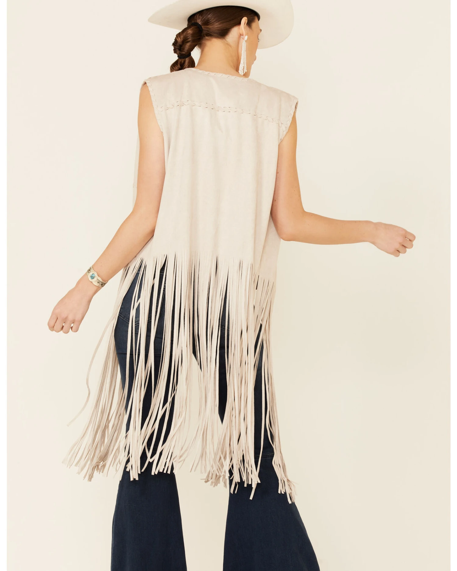 - Long fringe detailing along front & back hem