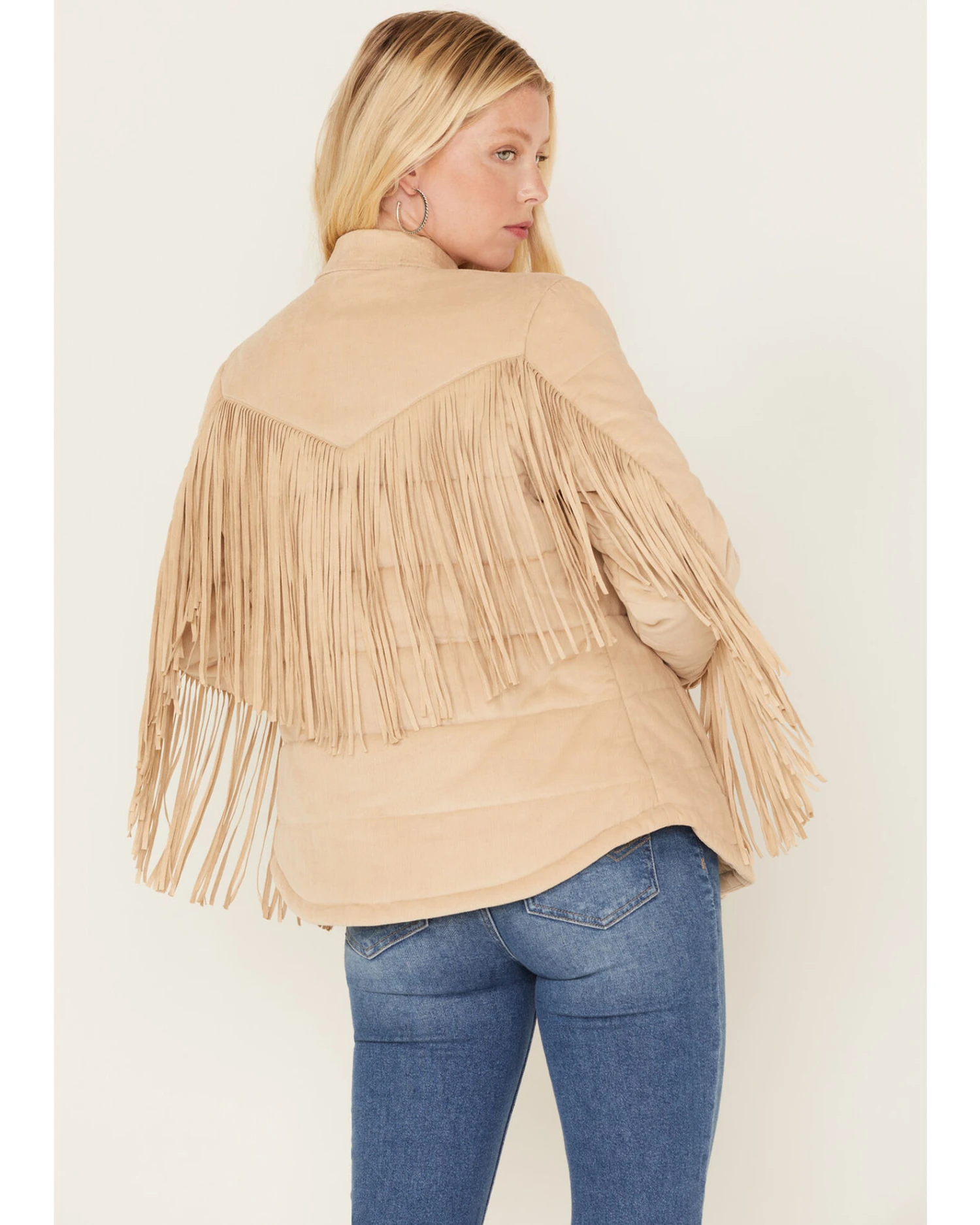 - Fringe details along back yoke and sleeves