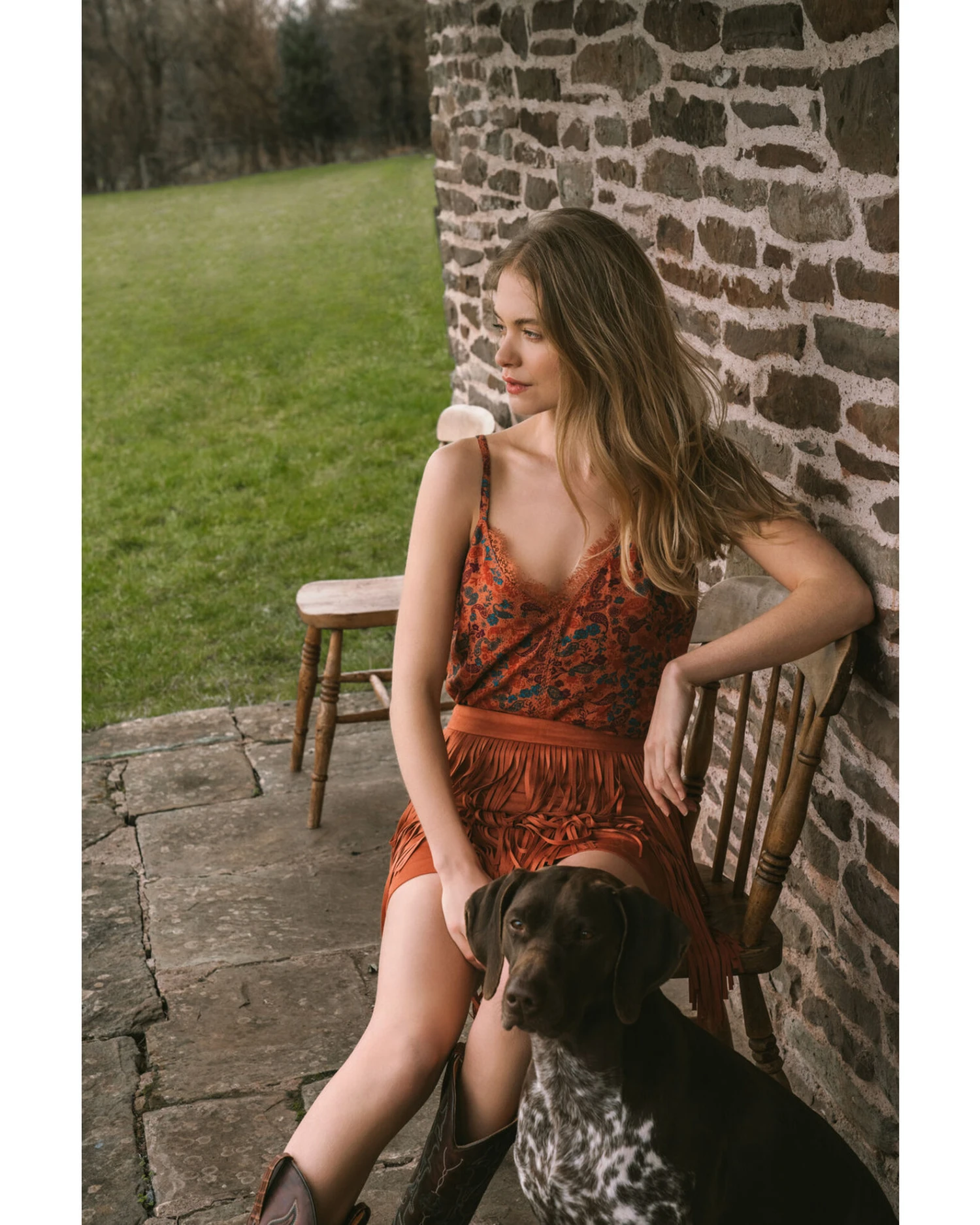 - Model Measurements: Height 5′ 8”, Bust 32″, Waist 25″, Hips 35″
