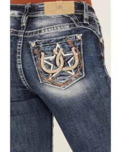 Miss Me Women’s Dark Wash Mid Rise Non-Flap Pastel Cross Bootcut Jeans