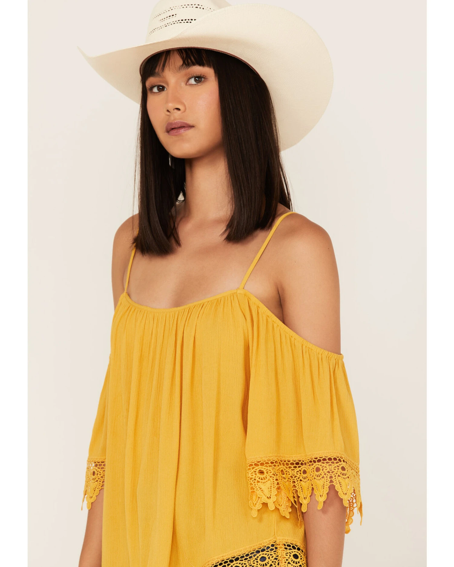 No Frills Women’s Lace Cold Shoulder Long Sleeve Woven Top