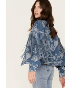 Rock & Roll Denim Women’s Southwestern Print Fringe Denim Jacket