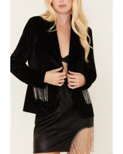 Rock & Roll Denim Women’s Shimmer Velvet & Rhinestone Fringe Blazer