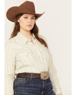 Roper Women’s Floral Print Long Sleeve Pearl Snap Western Shirt –Â Plus
