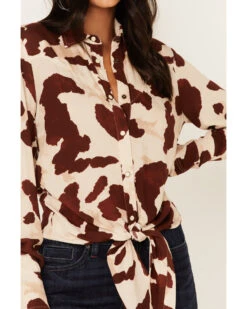 Idyllwind Women’s Cow Print Tie Front Long Sleeve Western Shirt