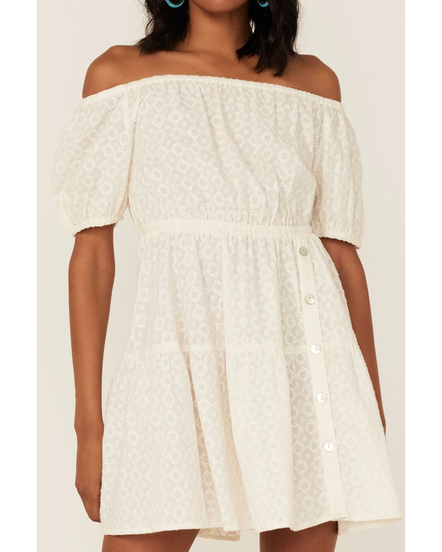 Shyanne Women’s Eyelet Off Shoulder Side Button Mini Dress
