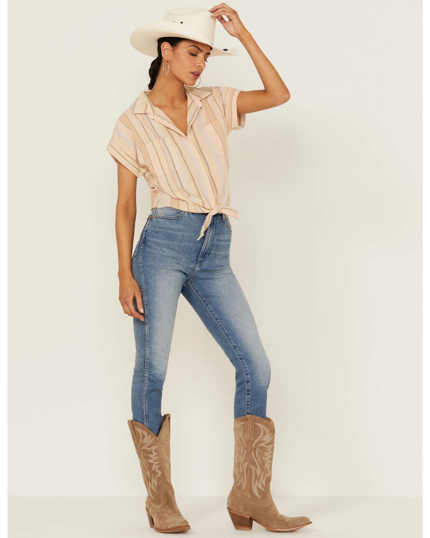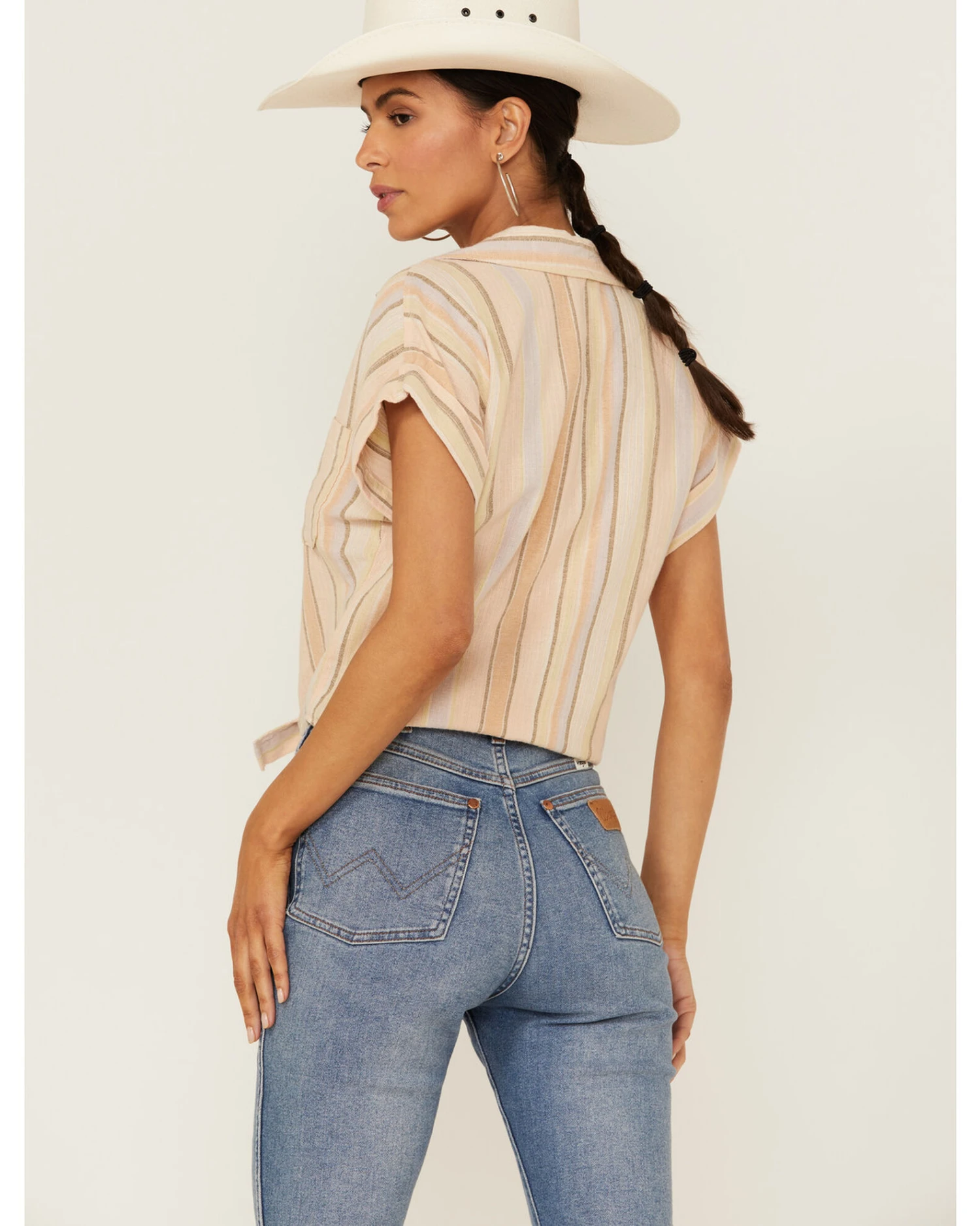 Shyanne Women’s Multicolored Stripe Tie Front Camp Blouse