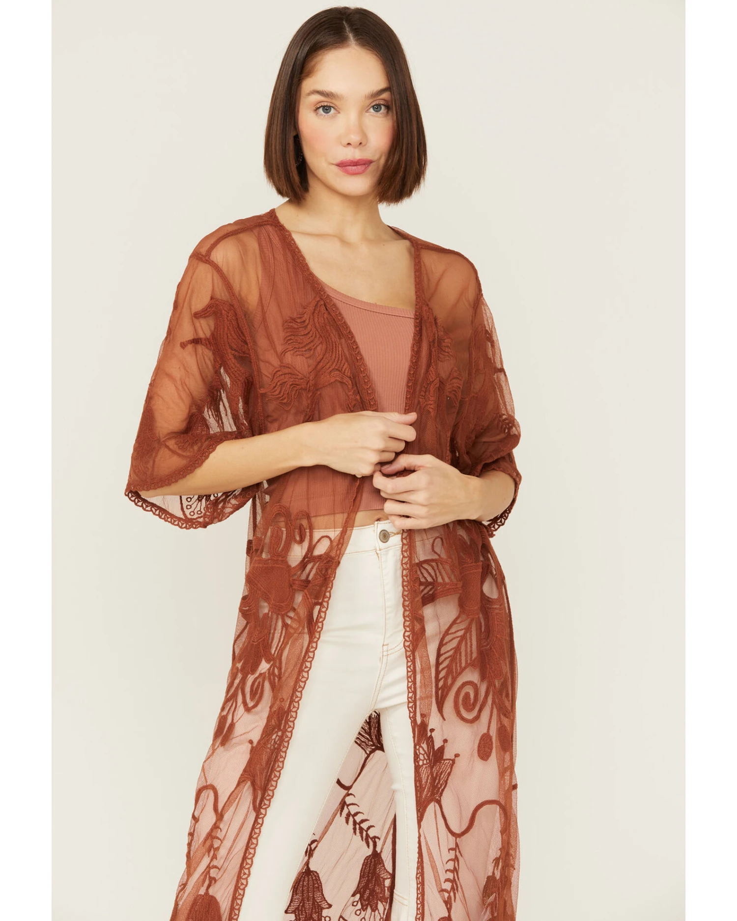 Shyanne Women’s Rust Lace Tassel Kimono