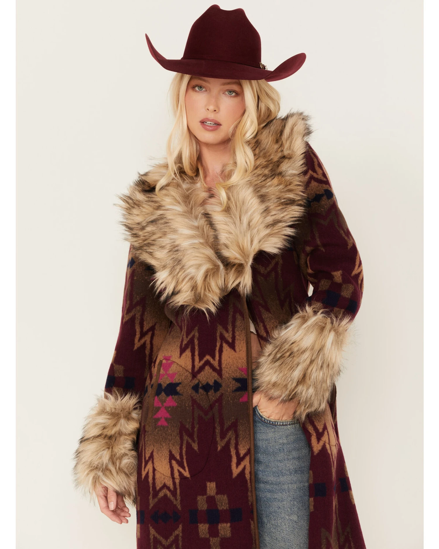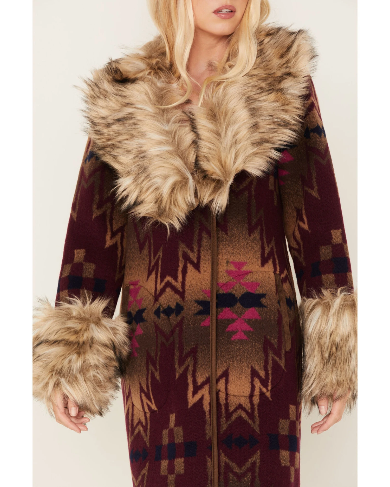 Tasha Polizzi Women’s Southwestern Print Faux Fur Adirondack Blanket Coat