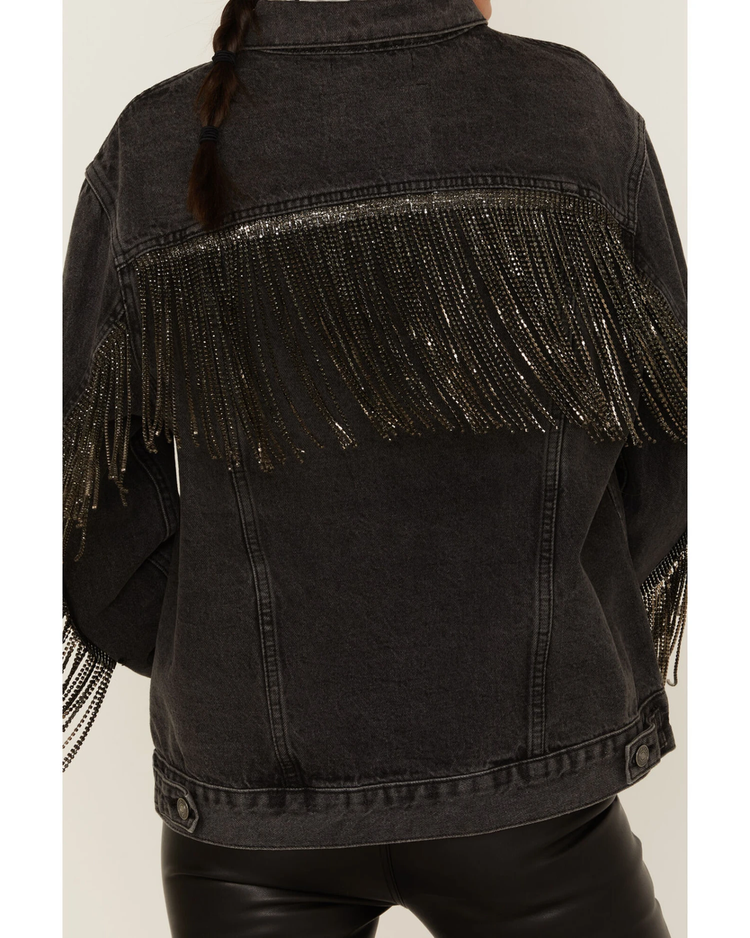 The Andy Jacket By DanielXDiamond: Women’s Gray Denim Jacket With Gunmetal Fringe