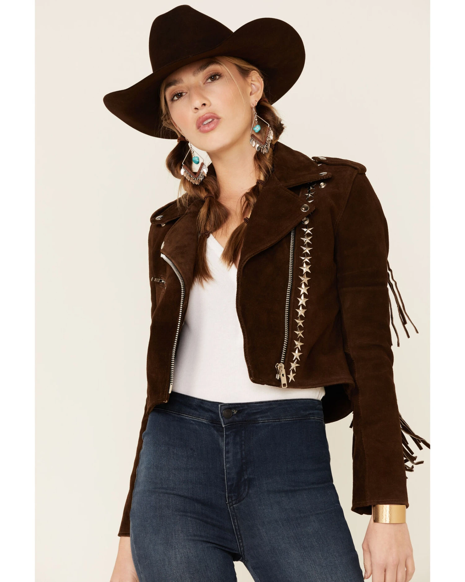 Understated Leather Women’s Tan Paris Texas Star Studded Jacket