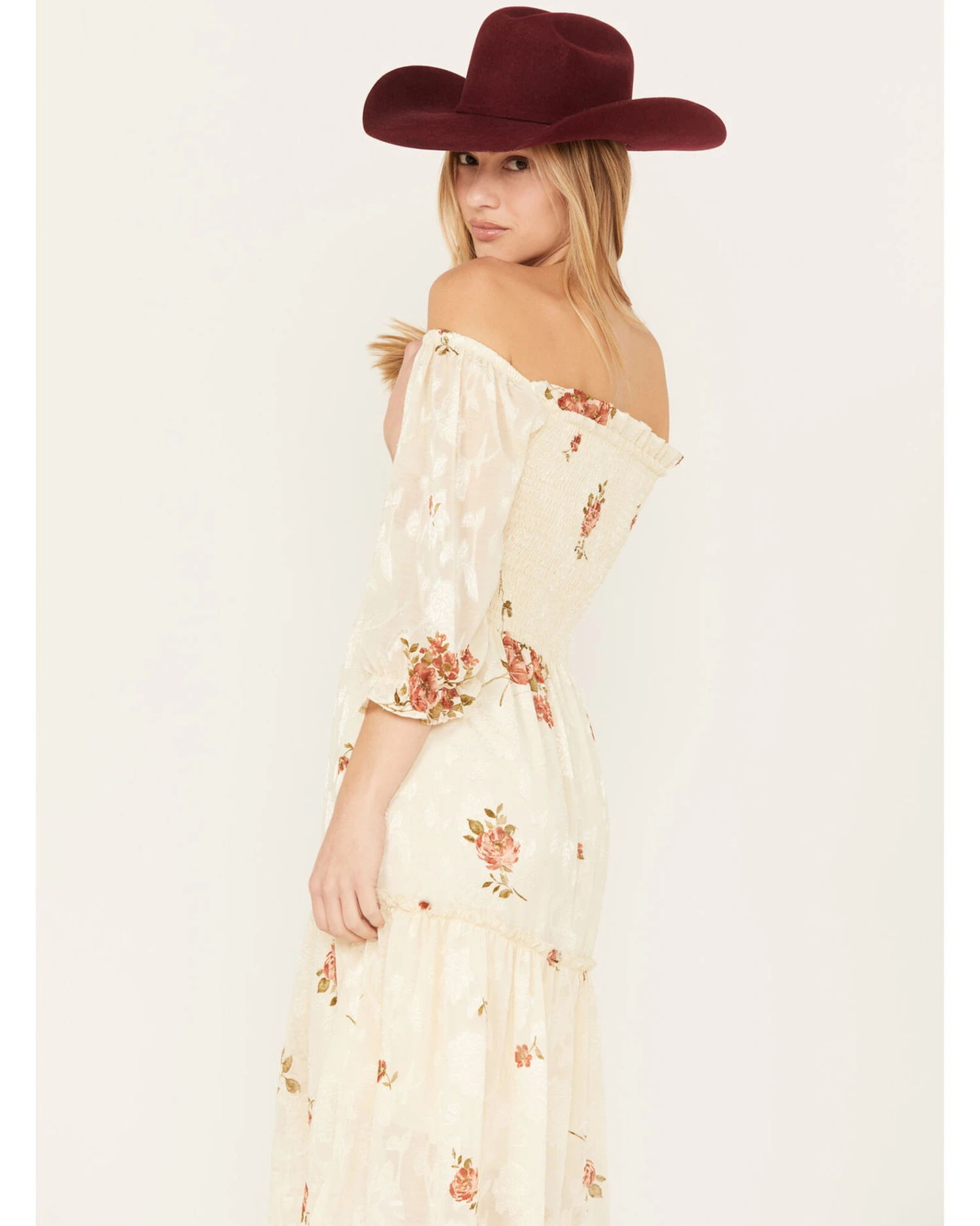 - Cream with floral print throughout