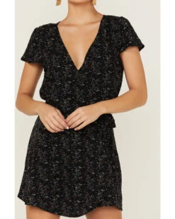 Angie Women’s Flutter Sleeve Macrame Insert Floral Print Dress