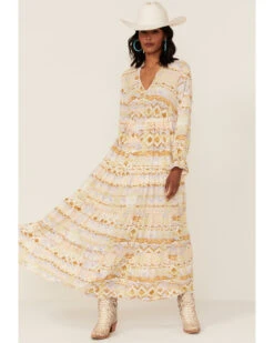 Shyanne Women’s Watercolor Southwestern Maxi Long Sleeve Dress