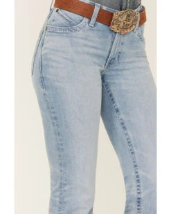 Wrangler Women’s Wild West 603 Light Wash Patty High Rise Distressed Cropped Straight Jeans