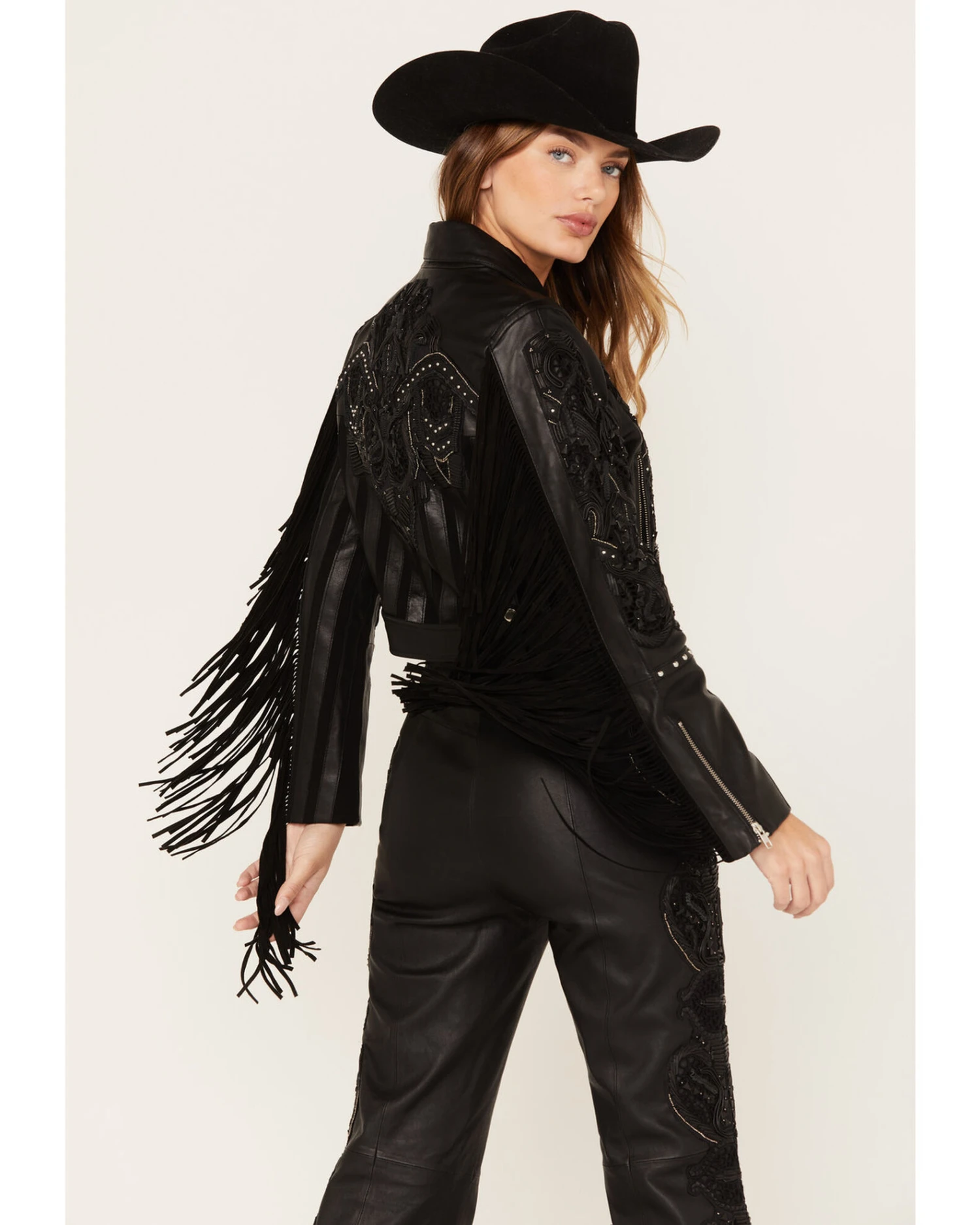 Rock & Roll Denim Women’s Shimmer Velvet & Rhinestone Fringe Blazer