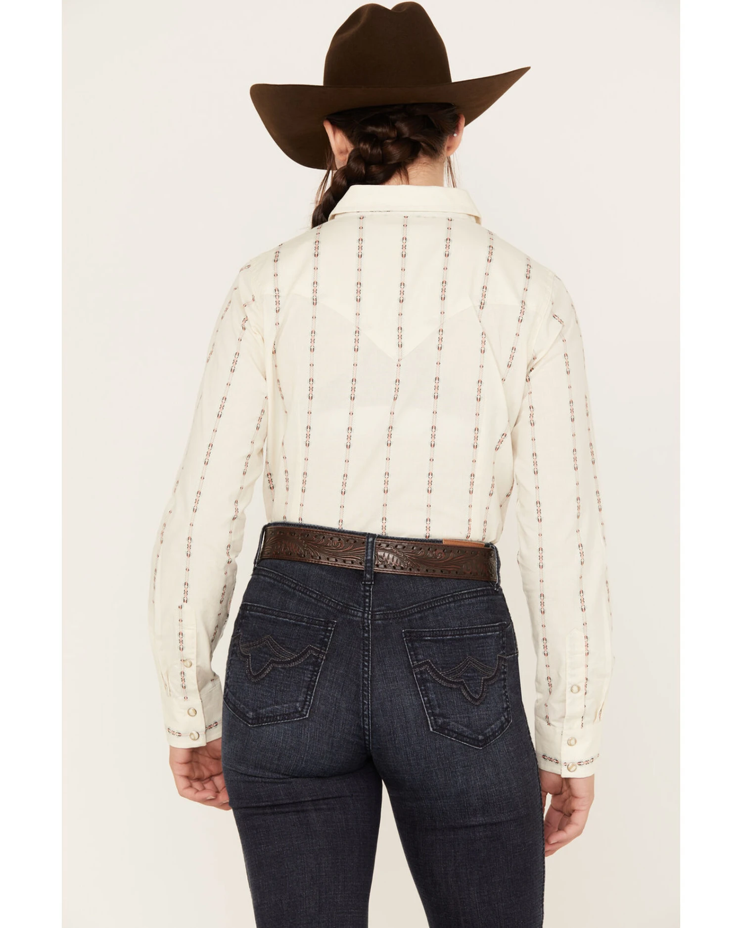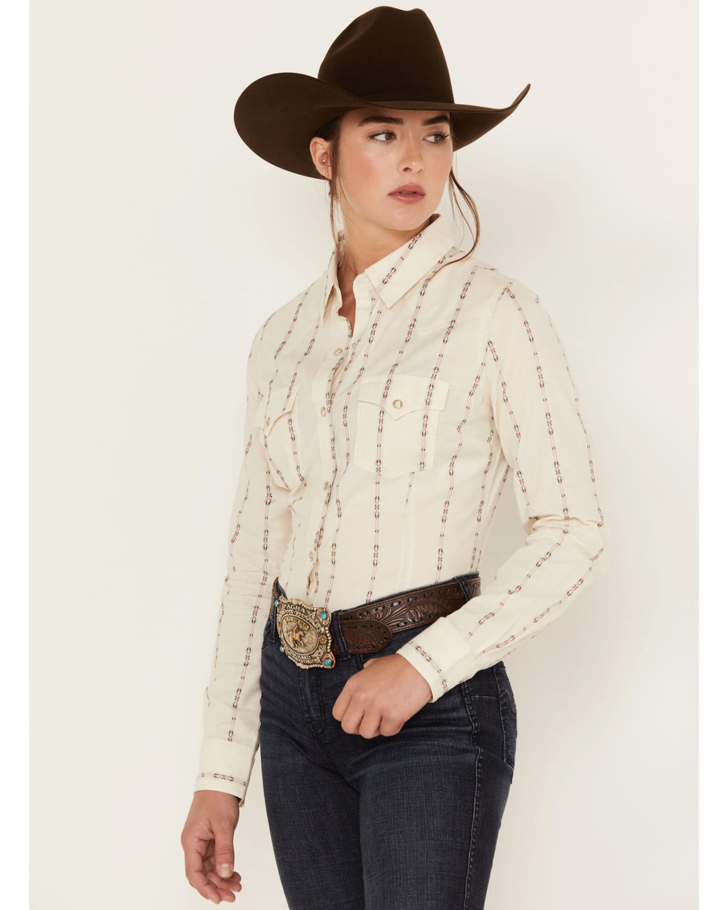 Wrangler Women’s Southwestern Striped Print Long Sleeve Snap Western Shirt